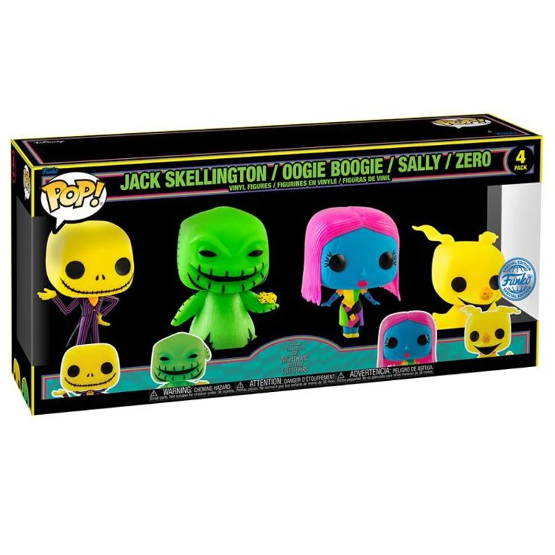 Funko Pop! Disney O Estranho Mundo de Jack Jack Skellington Oogie Boogie Sally Zero 4 Pack Exclusivo Blacklight Original Colecionavel